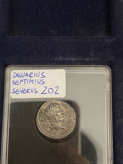 Prodaja se lepo ohranjen rimski srebnik Denarius Septimius Severus iz leta 202