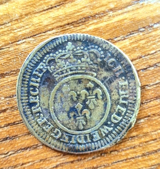 Večji bronasti novec - 27 mm, žeton, francoskega kralja Ludvika XV. 1715-1774, brez letnice, v odlični kvaliteti in še boljši ceni, redek.