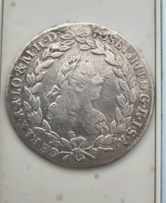 Srebrni novec cesarja Jožefa iz leta 1776. Veljaven na celotnem področju Slovenije
