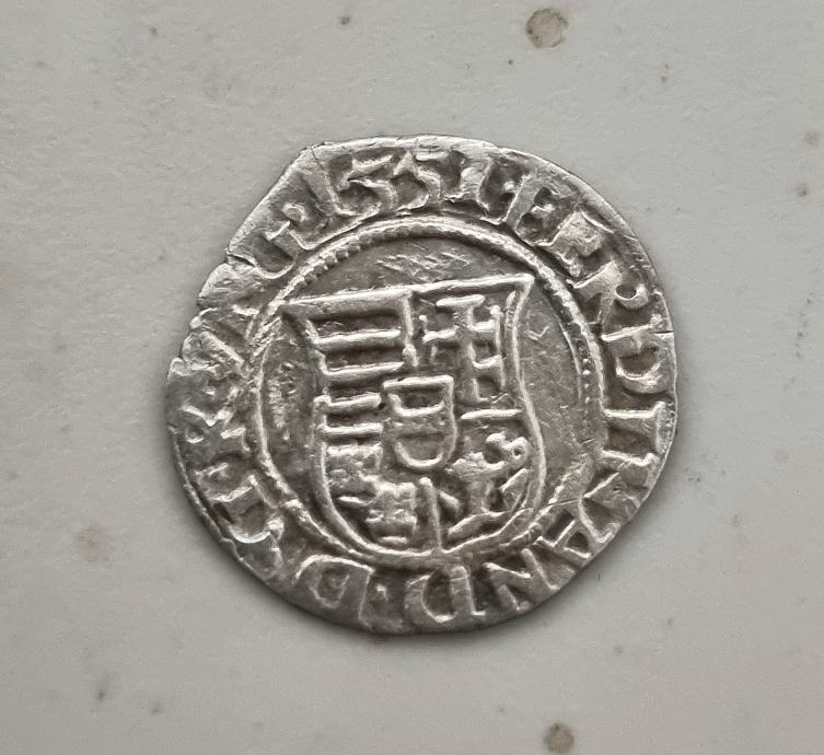 Srebrni krajcar cesarja Ferdinanda I. kovan v Kremnici leta 1551. Veljaven na celotnem slovenskem področju - zelo lep