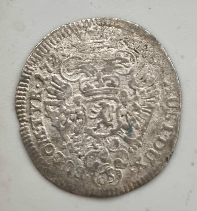 Srebrni groš cesarja Karla VI.. iz leta 1727. Kovnica Kremnica, lep, veljaven na celotnem slovenskem področju.