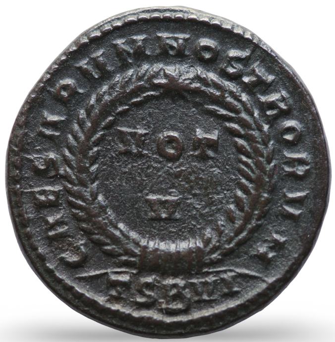 Rev: CAESARVM NOSTRORVM okoli venca, ki vsebuje VOT V; v ex.TSBVI.