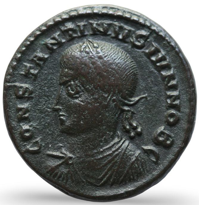 LaZooRo: Rimsko cesarstvo - AE Follis Konstantina II kot Cezarja (317 - 340 AD), CAESARVM NOSTRORVM VOT V