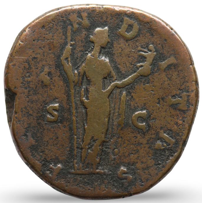 Rev: Fecunditas stoji desno, drži žezlo in dojenčka.