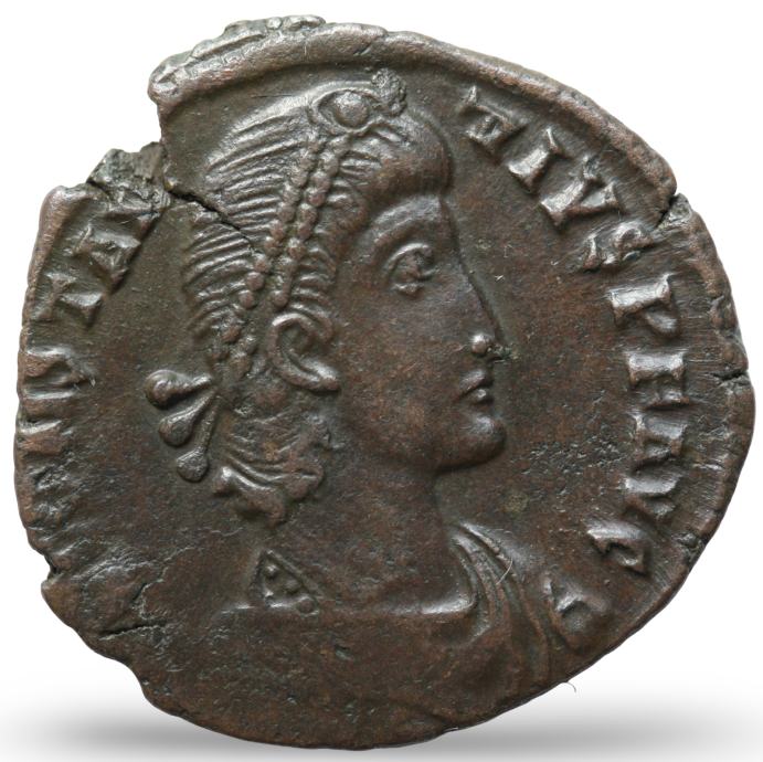 Spredaj: Doprsni kip z bisernim diademom, draped in kiraso desno.