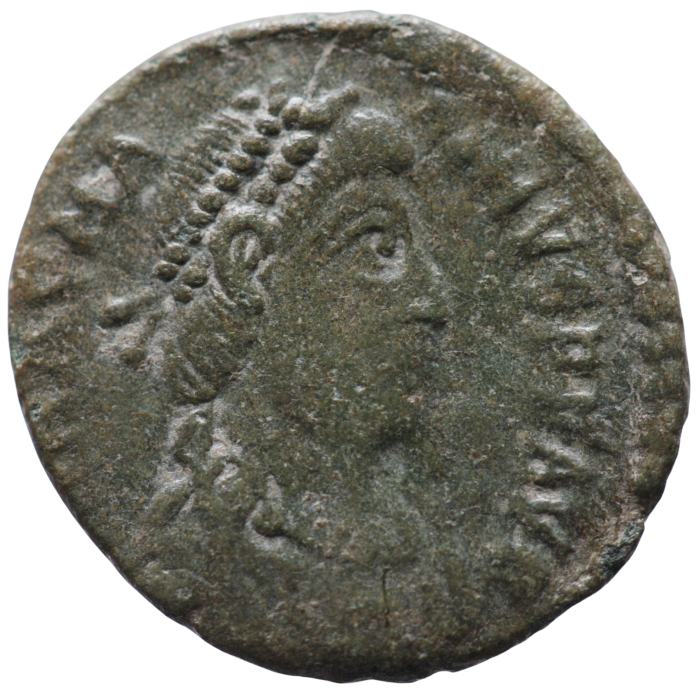 Spredaj: Doprsje z diademom, drapedom in kiraso desno.