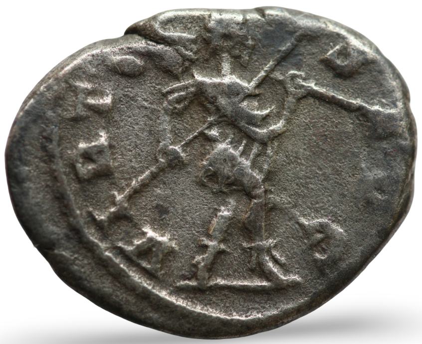 Rev: Aleksander Sever, nagrajenec in v podobi Romula, hodi desno, drži sulico v desni roki in trofejo čez levo ramo.