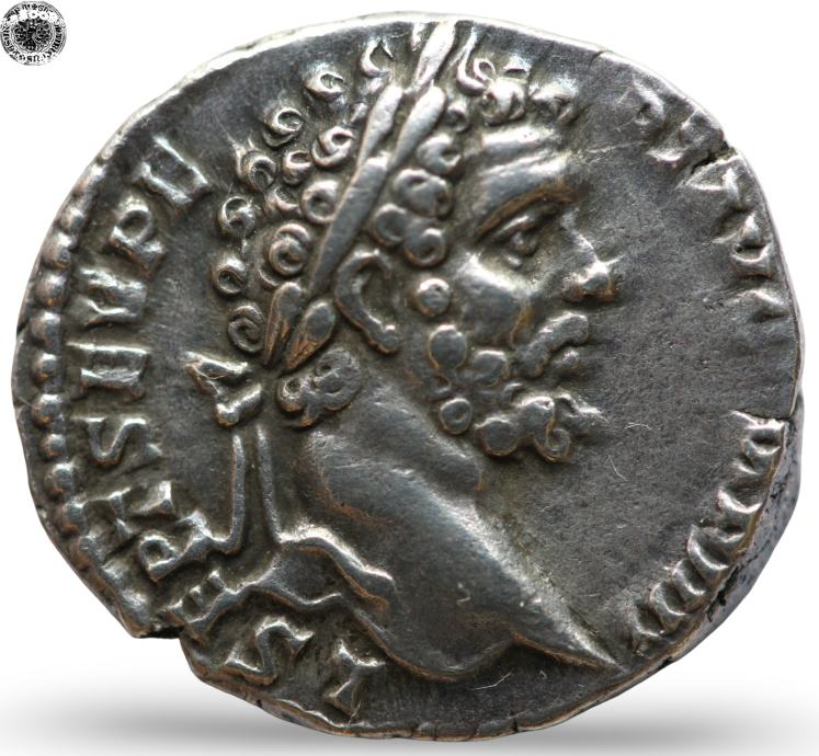 Spredaj: Glava Septimija Severa, nagrajenec, desno.