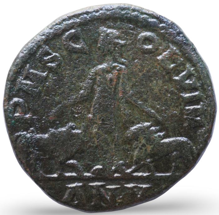 Rev: Mezija, ki stoji med bikom in levom, AN V v eksergi.