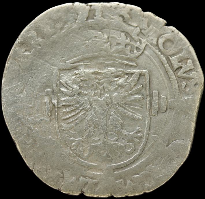 Zadaj: okronani grb Avstrije in Burgundije. Oznaka kovnice na vrhu