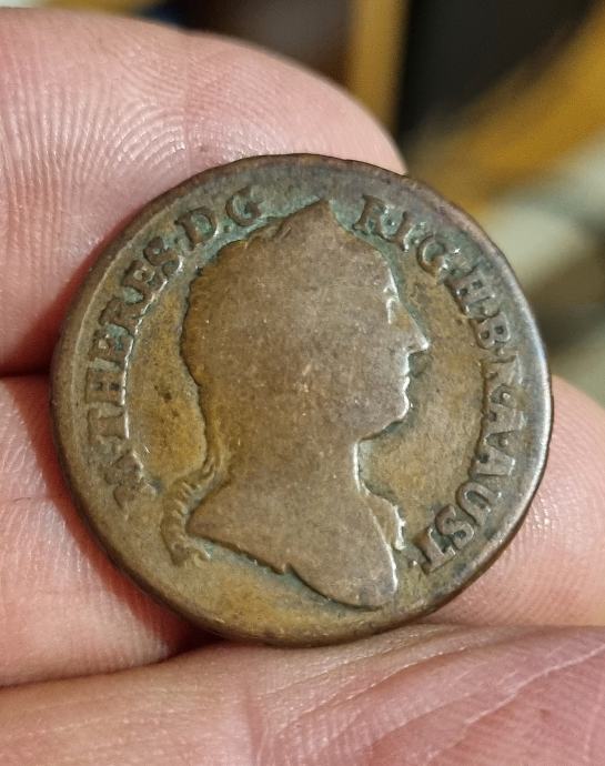 Večji bronasti novec tudi naše cesarice Marije Terezije v zelo dobri kondiciji. Za vsako zbirko