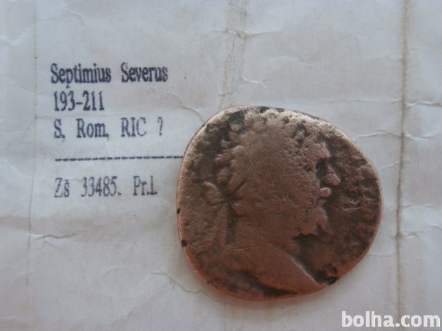 Prodam star rimski kovanec Septimius Severus 193 - 211 cesar rimskega cesarstva. Kovanec je bronast premera 26 mm, teže 10,24 g (Thessalonici, Makedonija) za 29 €, madžarsko srebrno medaljo Thaler sv. Jurija 18 stoletje za 60 €, 5 centimov francoske republike AN 8 AA za 35 €, EGY krajzar 1848 za 30 €, 1 centime 1962 francoske republike za 9 €, dva rimska kovanca za 25 €, in 10 centisimi 1928 Republika San Marino za 25 €.