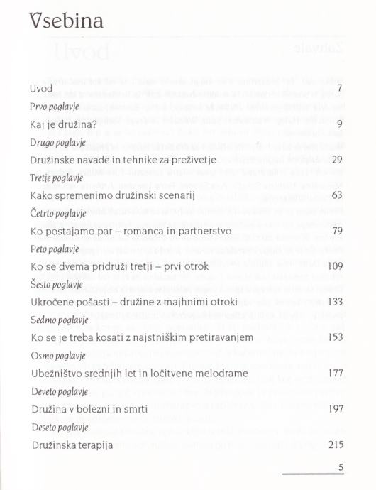 Knjiga pomaga odkrivati pasti družinskega življenja in bolje razumeti odnose znotraj in zunaj družine. Avtor obravnava široko paleto tem, od vprašanja, zakaj nas privlači točno tak in tak partner, kako se pravilno prepiramo, kako krotimo malčke, kakšen odnos se najbolj obrestuje pri težavnih mladostnikih, kako prebroditi krizo srednjih let, kako na družino vpliva rojstvo otroka, kako nastajajo družinski miti ipd. V knjigi, ki jo odlikuje izreden občutek za humor, lahko vsak najde veliko nasvetov. Številni vprašalniki nam pomagajo prepoznavati in reševati težave v družini. Pri tem nam koristijo tudi mnogi nazorni primeri iz resničnega življenja. Vznemirljiva, zabavna, pregledna, zelo kakovostna in praktična knjiga, ki podaja strokovno znanje družinskega terapevta na najbolj poljuden način.