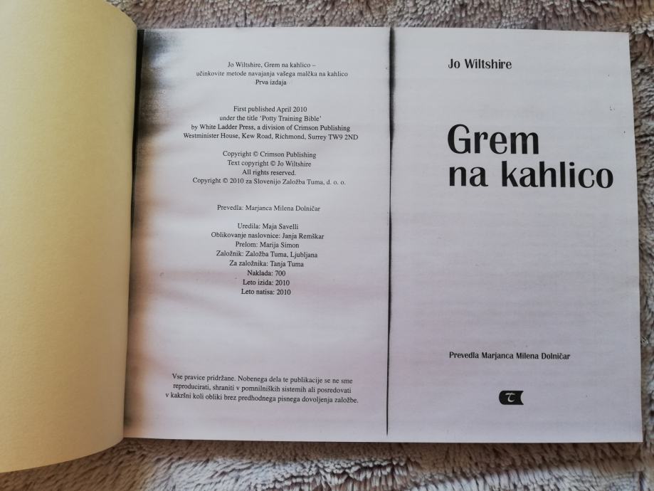 Prodam knjigo avtorice Jo Wiltshire Grem na kahlico iz leta 2010.