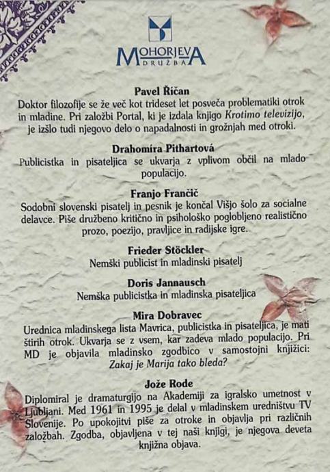 136 strani, trda vezava, 20 cm, izdala Mohorjeva družba v Celju 1999, zelo lepo ohranjen izvod.