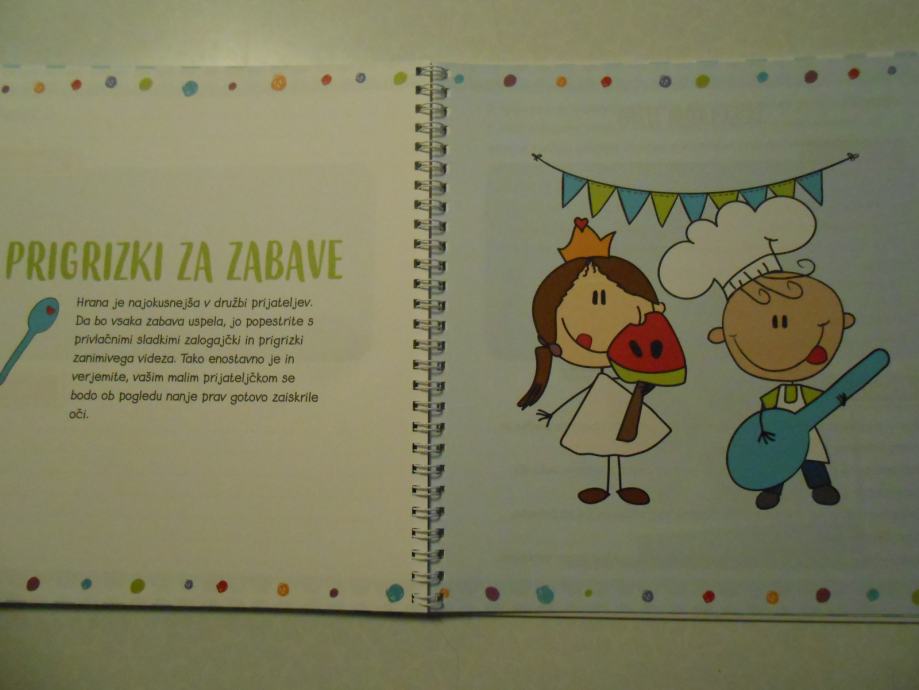Motivirajte svoje otroke z poučno,zabavno,barvito,ustvarjalno,spominsko...kuharsko knjigo,ki bo vaše otroke vse življenje spominjala,na brezskrbne otroške dneve,ko so se srečali z prvimi kuharskimi recepti in osvojili prve kuharske veščine.Knjiga je nova in je primerna tudi za darilo kjer so doma otroci.Povezava na predogled in naročilo na spodnjem linku: