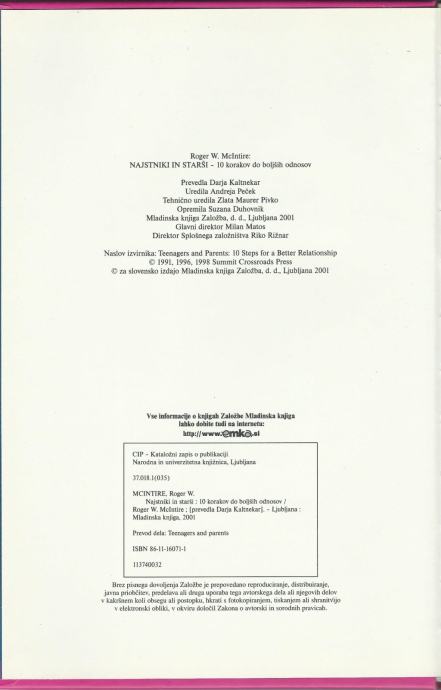 Roger W. McIntire - Najstniki in starši [Priročnik za starše]