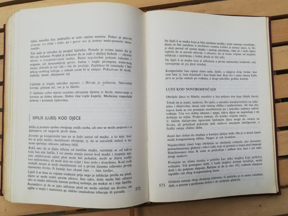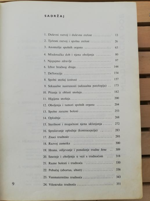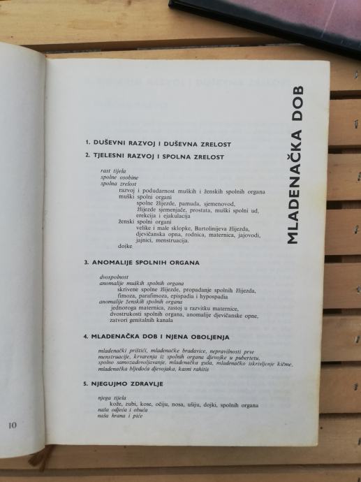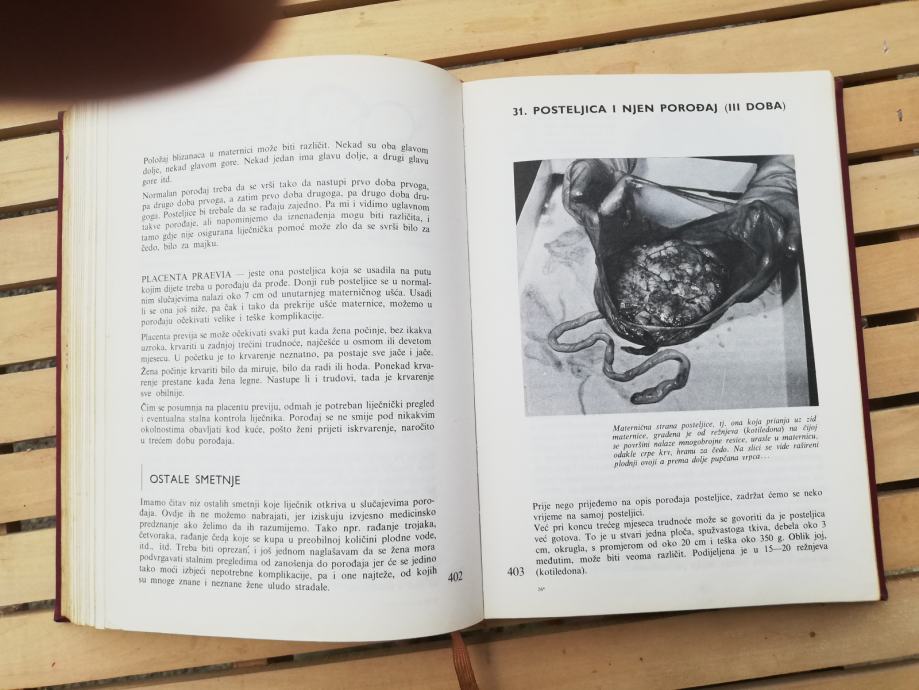 Odlična poučna knjiga o spolnosti, spolnih bolenih, nosečnosti, porodu in doječku.. Veliko slik, risb in praktičnih nasvetov. Knjiga kot so jih izdajali včasih z vsemi napotki in vsemi morebitnimi zapleti in reševanje teh zapletov. Izšla v Zagrebu 1965, hrvaški jezik, latinica.