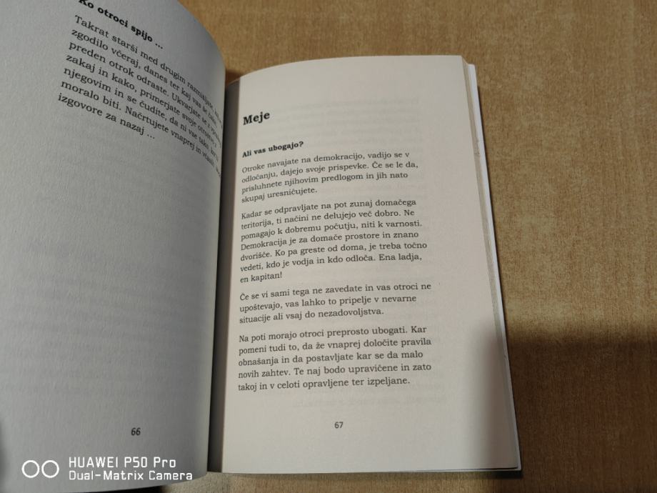 Sodobna predšolska vzgoja, na uporaben način, s pregledom skozi različne vzgojne priložnosti. Konkretni nasveti kako postaviti meje, otroka navaditi na promet, samostojnost ob različnih priložnostih.