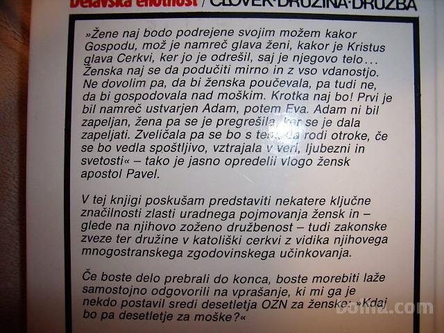 Knjiga Ženska, cerkev in družina ima trdo vezavo, obsega 154 strani, izdajatelj Delavska enotnost 1986, velikost 14 x 20,5 cm, zbirka Človek, družina, družba.