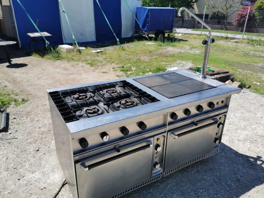 PRODAMO ... KOMBINIRAN DVOJNI ŠTEDILNIK 4x PLIN + 4x EL.PLOŠČA + 2x ELEKTRIČNA PEČICA IN VELIKA DOTOČNA PIPA ZA POLNJENJE VELIKIH LONCEV - INOX ... PRIZNAN PROIZVAJALEC LOHBERGER … ODLIČNO OHRANJEN IN BREZHIBNO DELUJOČ ... MERE SO : 170x87x85 cm ... GARANCIJA ... MOŽNOST DOSTAVE ... POGLEJTE ŠE OSTALE NAŠE OGLASE ... TEL : 070733880