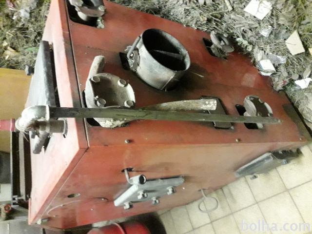 Peč Ferotherm 25 kw, pripravljni priklopi za vse energente, drva, premog, biomaso, plin in kurilno olje. Rešetka vodno hlajena. Pripravljena za vgradnjo vseh gorilcev: peletni, tekoči derivati in plin. Izdelana iz ognjevarne pločevine 3,4 in 5 mm. Ima original regulator vleka. Uporabljana je bila občasno za visoko temperaturo z kurjenjem suhih drv. Potrebna je pregleda in ureditve za zagon. Dimenzije: globina 1130 mm od regulatorja spredaj, do priključka zadaj, ohišje 990 mm. Širina ohišja 585 mm plus čistilna vratca 55 mm. Višina ohišja 1120 mm plus vanostni ventil 150 mm. Dimiški prključek fi 180 mm. Bojlerja nima, lahko se priklopi na hranilnik poljubno. Cena 100 €. Iz kleti jo morate sami odnest po 14 stopnicah(4 do 5 oseb). V primeru da sami organiziramo iznos je cena 160 euro