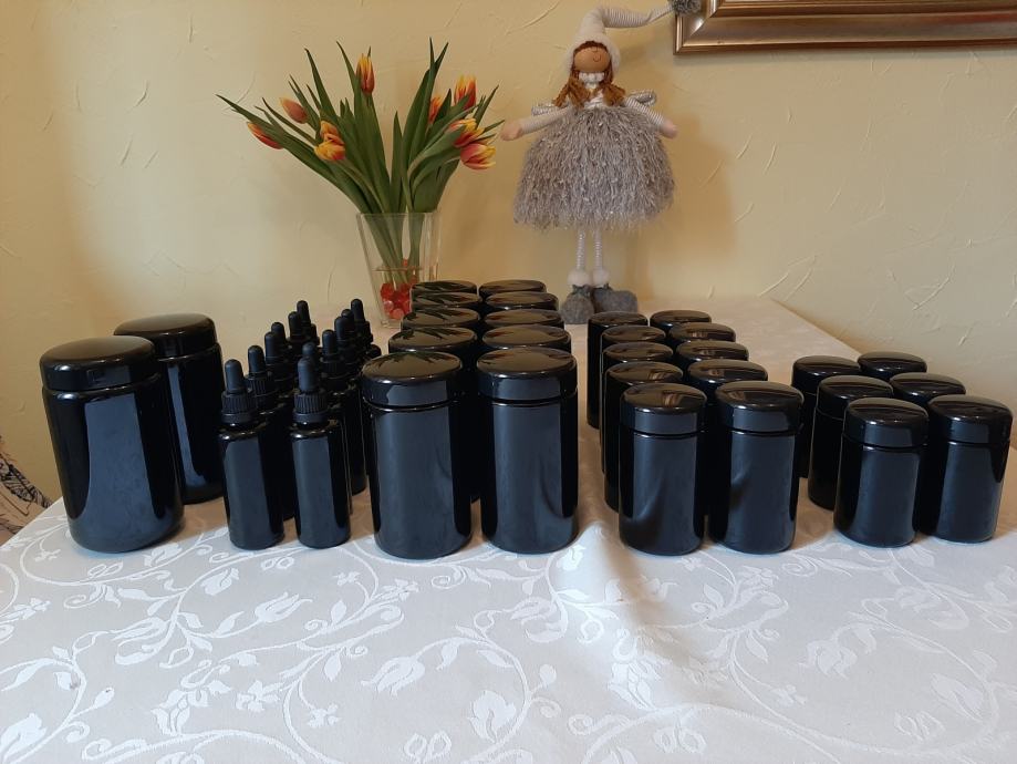 Prodam večje količine, rabljenih kozarcev z navojem iz Mironskega stekla (vijolične barve).