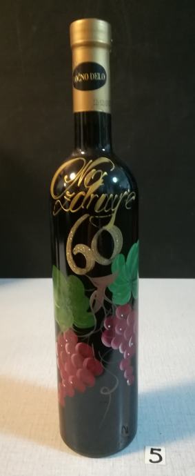 5. Steklenica za 60 let z poslikavo grojzdja in napisom "na zdravje" (polnjena z kakovostnim vinom - Cabernet / Sauvignon - Slovenska Istra). Cena 8€