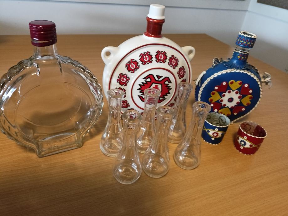 Prodam komplet 3 čuter. Dve sta stekleni ena je iz porcelana, zraven je 6 steklenih fraklčkov, in 2 usnjeni dekorativni oblekci za steklene kozarcke. modra čutara je oblečena v usnje. Cena 18 eur za komplet Tatjana 031532603. Vabljeni k ogledu še ostalih mojih oglasov.