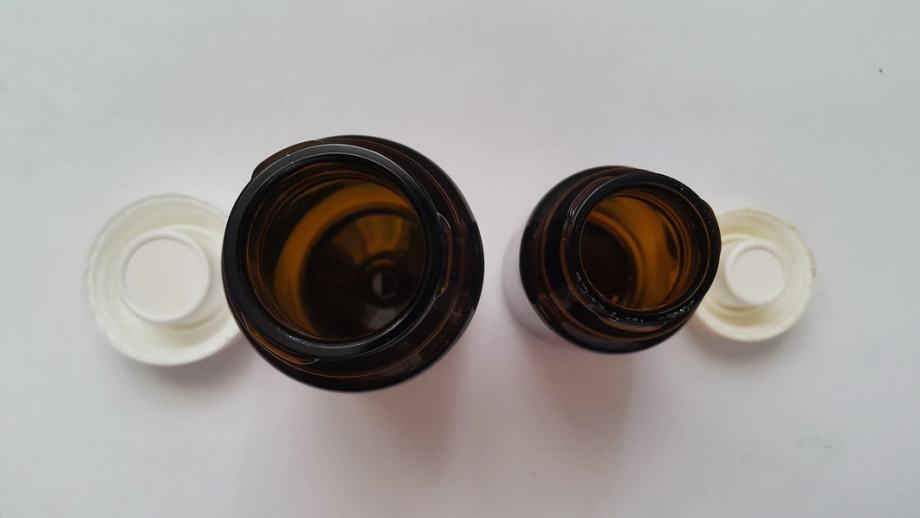 Prodam dva tipa (praznih !) Roche svetlo rjavih stekleničk/flašk od zdravil-tablet (VEČ 10 KOSOV !). Vse so lepo ohranjene, počiščene in funkcionalne. V belem pokrovčku od večje in manjše je tudi ta silikagel prah (ki nase veže vlago). Tako da te stekleničke niso primerne za hranjenje nekih tekočin (bolj za trdne in poltrdne zadeve). Ker je steklovina svetlo-rjave barve, so flaške primerne za hranjene zadev, ki so naprimer občutljive na svetlobo. Cena v oglasu je za komplet obeh (ena večja in ena manjša - s popustom). Pri nakupu (vsaj 10 kosov) obeh tipov primaknem tudi kakšen popust. Po komadu pa so okvirne cene za večjo flaško 0,20 €, za manjšo pa 0,10 €. Pri nakupu vsaj 10 kosov večje ali manjše dodam še kakšno ekstra zraven. Skratka že čakajo na svoje nove lastnike.