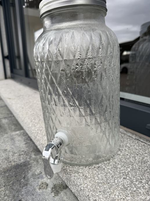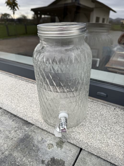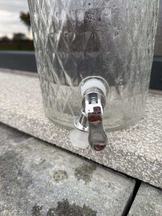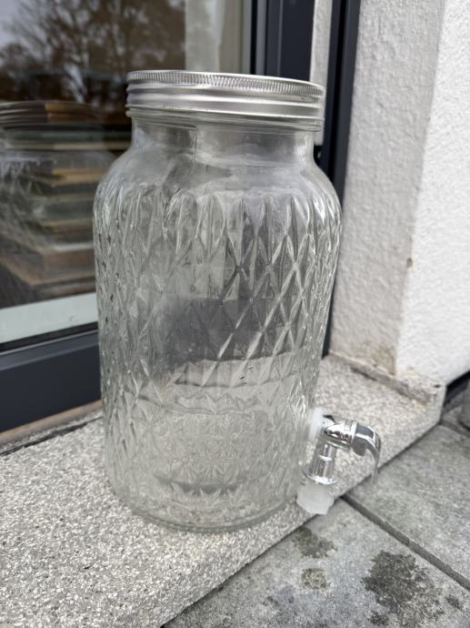 Prodam stekleni dozirnik s pipo, kot servirna posoda za točenje pijač.