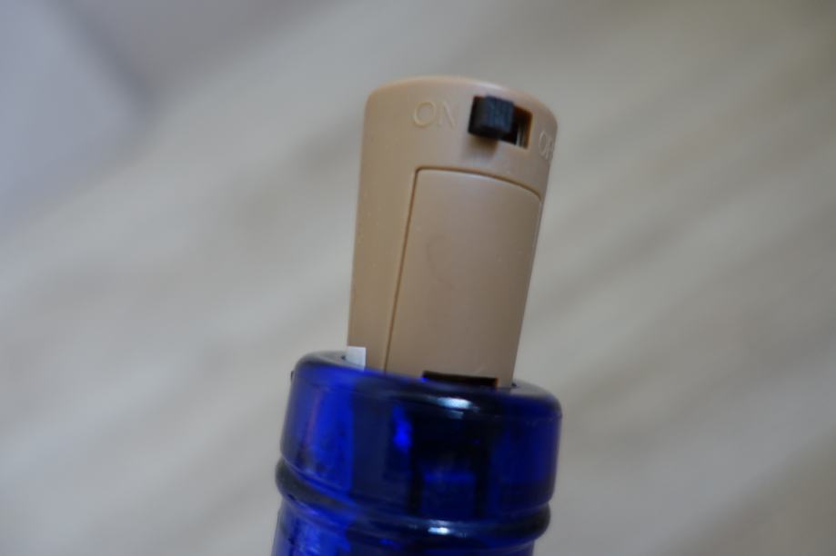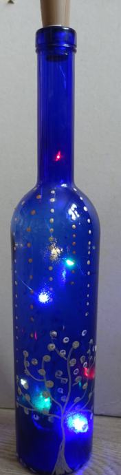 1,00 EUR - modra višina 38 cm, v njej je trakec z led lučkami, ki se prižge s stikalom na zamašku.