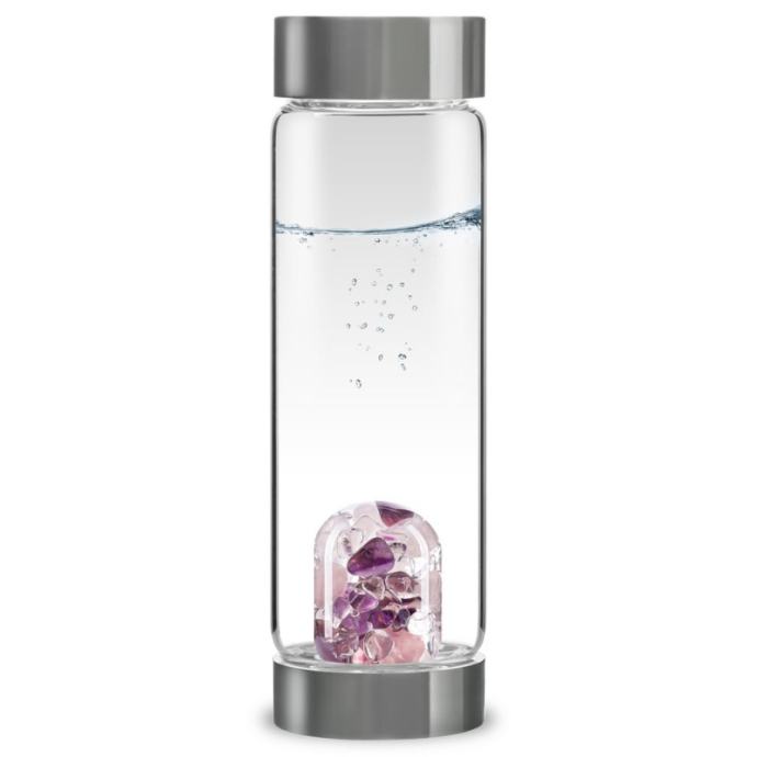 Povsem nova in še zapakirana steklenica za vodo z dragimi kamni "Navdih" - vsebuje kristale ROŽEVEC, AMETIST in KAMENA STRELA