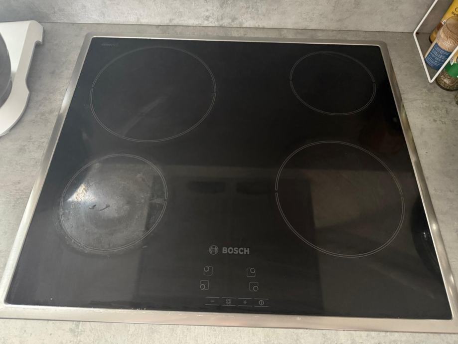 Prodamo rabljeno steklokeramično ploščo Bosch širine 60 cm. Cena 30€. V primeru nakupa skupaj s kuhinjsko napo Olimpia (ločen oglas) je cena za vse skupaj 50€.