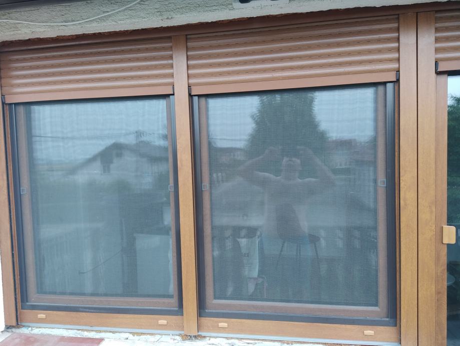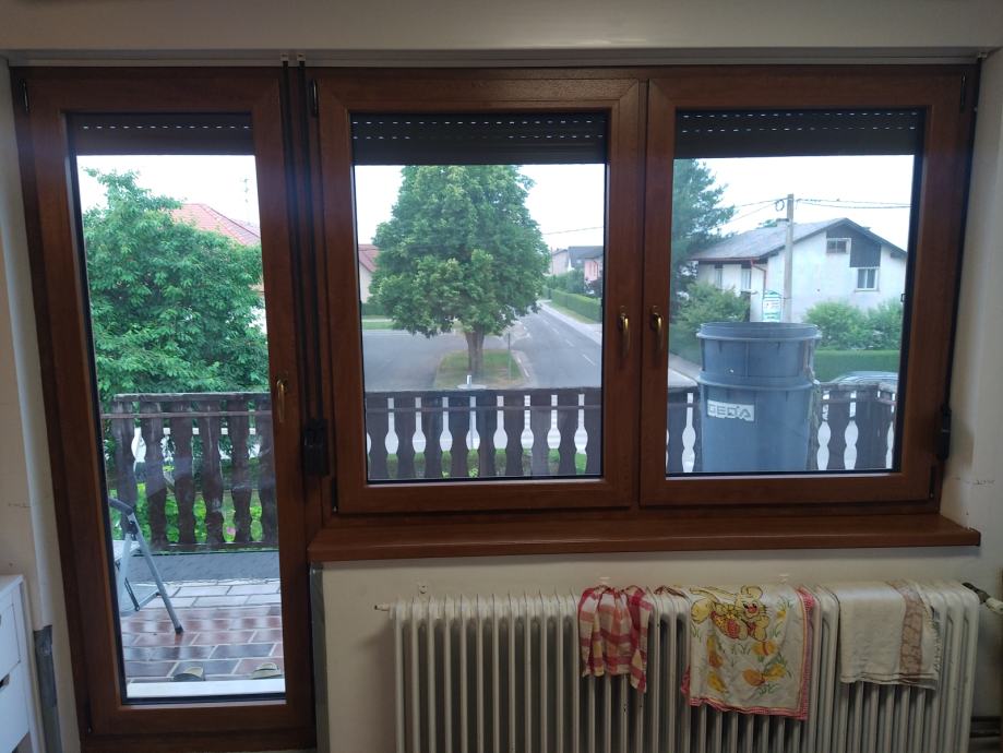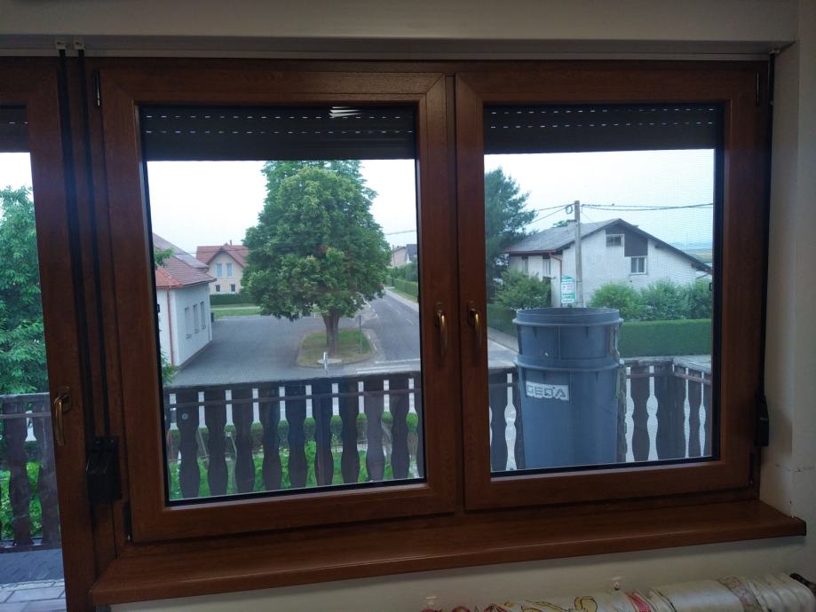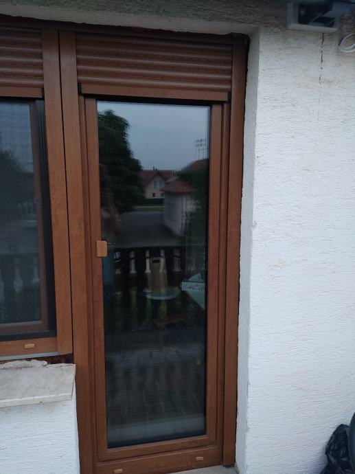 Prodam komplet PVC dvoje oken in balkonska vrata s trojnim steklom (dvojni termopan) znamke MIK Celje, vse tri z roletami v enaki barvi, notranja PVC polica za okni in montažna komarnika za okni(na zunanji sliki sta vidna temnejša robova), roletna omarica mere 18x23cm je v enem kosu dolžine 264cm, odpira se od znotraj,sname se notranji pokrov