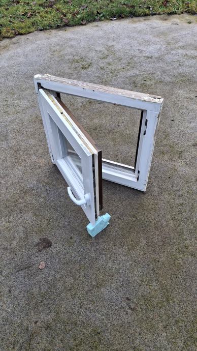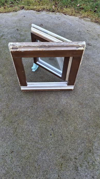 Prodam rabljeno leseno okno 60x 60 cm. Zunaj rjave barve . Znotraj bele barve . Odpira se levo in na kip. Zasteklitev je termopan. Z zunanje strani je aluminijasto prepiralo. Cena 40€. Ogled možen na Jesenicah .Tel. 041 645 808
