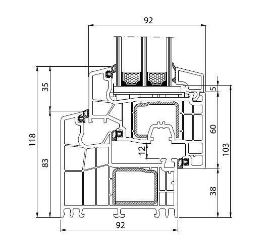 Boljša toplotna izolacija zaradi napredne zasteklitvene debeline celo do 60 mm. Profil A razreda zaradi svoje širine (92 mm) zagotavlja odlično toplotno izolacijo in visoko energetsko učinkovitost.