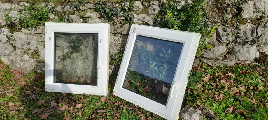 Prodam dve rabljeni PVC okni dimenzij 75 (širina) x 80 (višina). Levo odpiranje, dvoslojni termopan, bele barve.