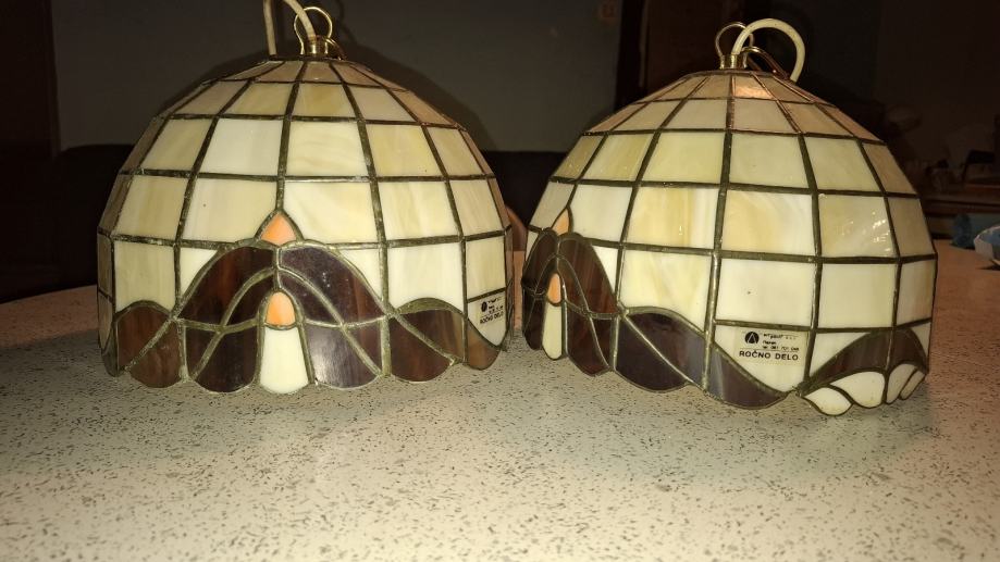 Prodajam rabljene stenske svetilke v stilu Tiffany z elegantnimi steklenimi senčniki in kovinskimi detajli. Svetilke so ročno delo in so v dobrem stanju, idealne za ustvarjanje prijetnega in toplega ambienta v vašem domu. Stilski dizajn z barvnimi vzorci iz kremne in rjave barve doda prostoru nostalgičen in umetniški pridih.