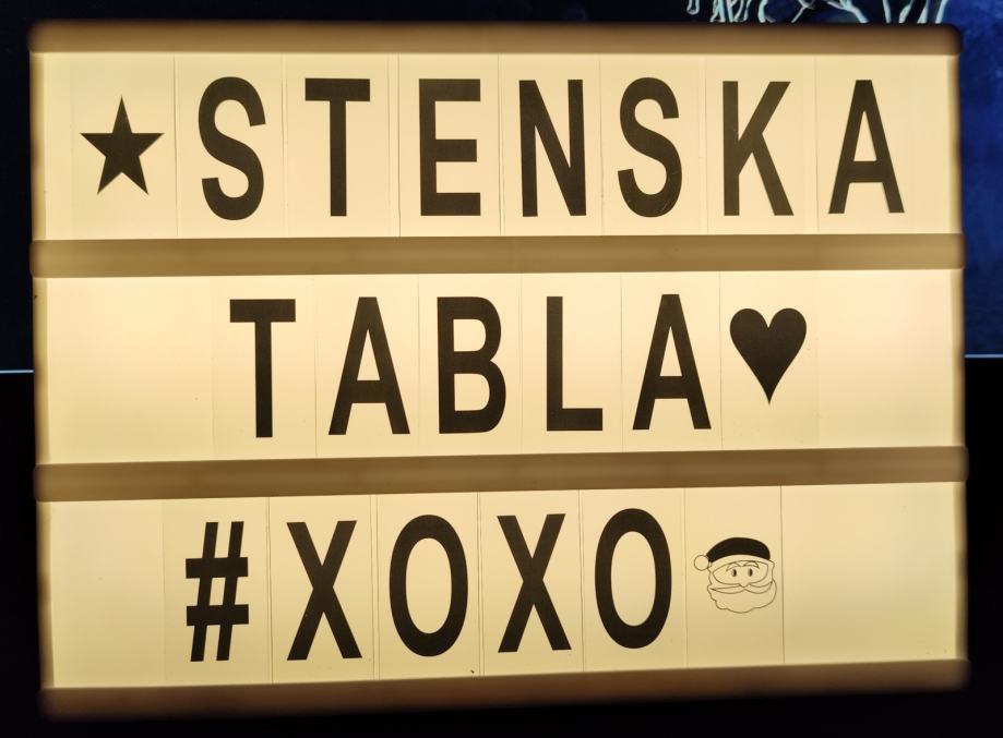Prodam stensko baterijsko tablo z napisom, dolžina 30 cm. Tabla ni bila uporabljana in je praktično kot nova. Zraven pride še paketek črk za ustvarjanje poljubnih napisov. Cena 10€.