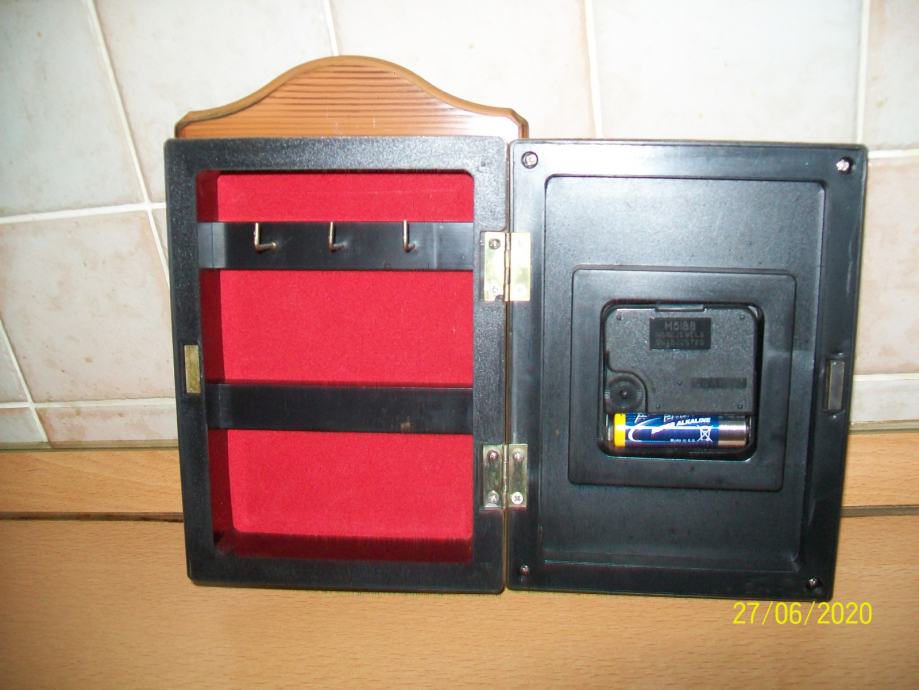 Omarica z uro je iz plastike, ni pa nikoli rabljena, tako da je v bistvu nova in jo zato toplo priporočam. V njo lahko obesimo 3 ključe.