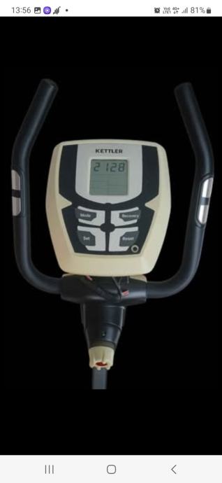 Kompaktni eliptik Kettler Axos Cross M z vadbenim LCD zaslonom. Na voljo je 8 stopenj obremenitve, preko ročnih senzorjev pa boste seznanjeni tudi s svojim srčnim utripom.Prodamo zardi neuporabe