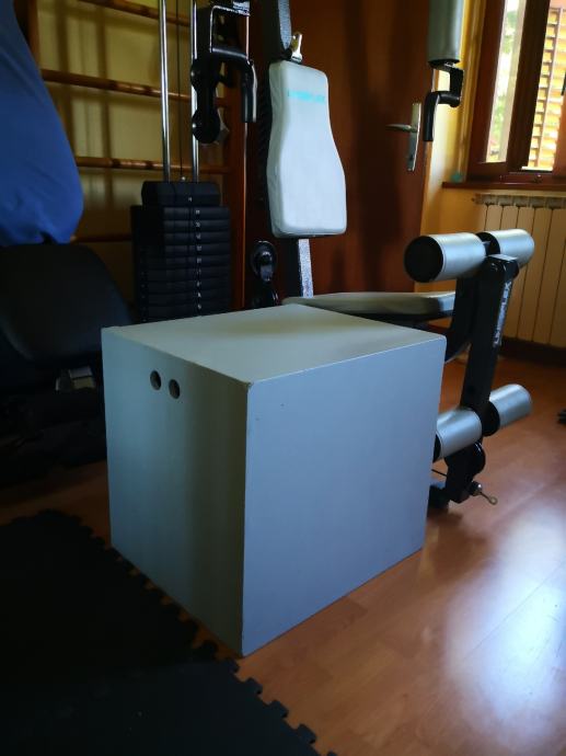 Pliometrični zaboj za funkcionalno vadbo, zelo soliden z notranjo križno podporo, mere 45x50x55, težak, da se ne premika med vadbo