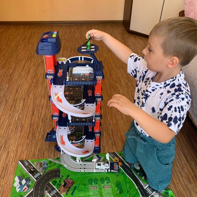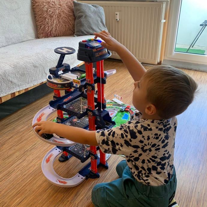 - VISOKA KAKOVOST IN VZDRŽLJIVOST MATERIALOV – Garaža za igrače ima 4 nivoje, izdelana iz trdnih in trpežnih PP in ABS materialov, kar zagotavlja dolgo življenjsko dobo in varnost uporabe. Vsak element, od parkirišča na vsaki ravni do steze in varnostnih ovir, je bil skrbno zasnovan tako, da vzdrži intenzivno igro. Dodatno so v kompletu tudi elementi PS, kot so avtomobilčki in helikopter, ki so prav tako kvalitetni in odporni na poškodbe. Zaradi tega je garaža popolna za otroke, ki obožujejo dinamično igranje avtomobilčkov in gradnjo lastnih mest.