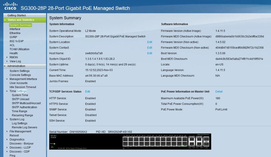 - upravljanje preko Web vmesnika ali SSH (ukazi kot pri Cisco Catalyst seriji mrežnih stikal)