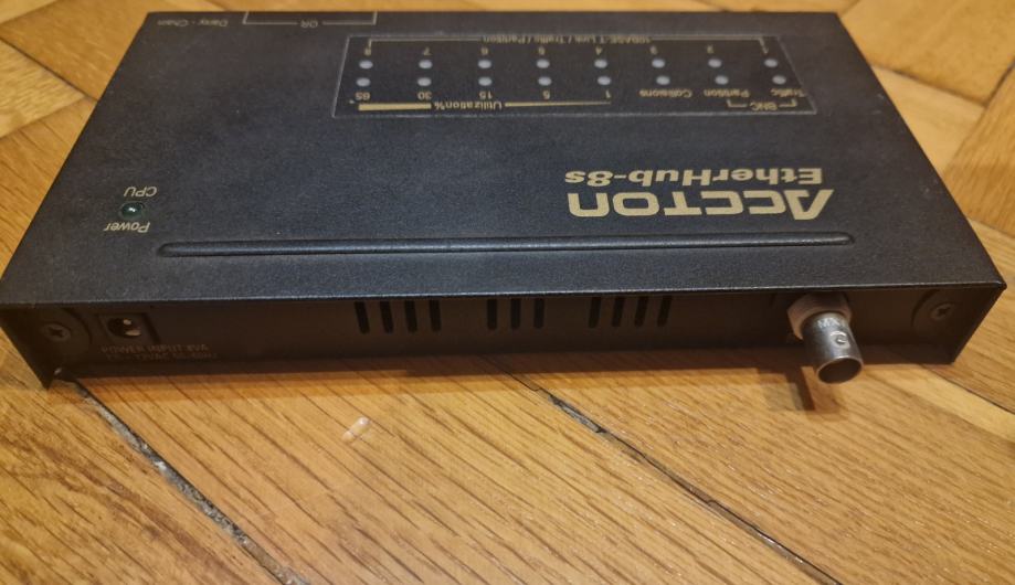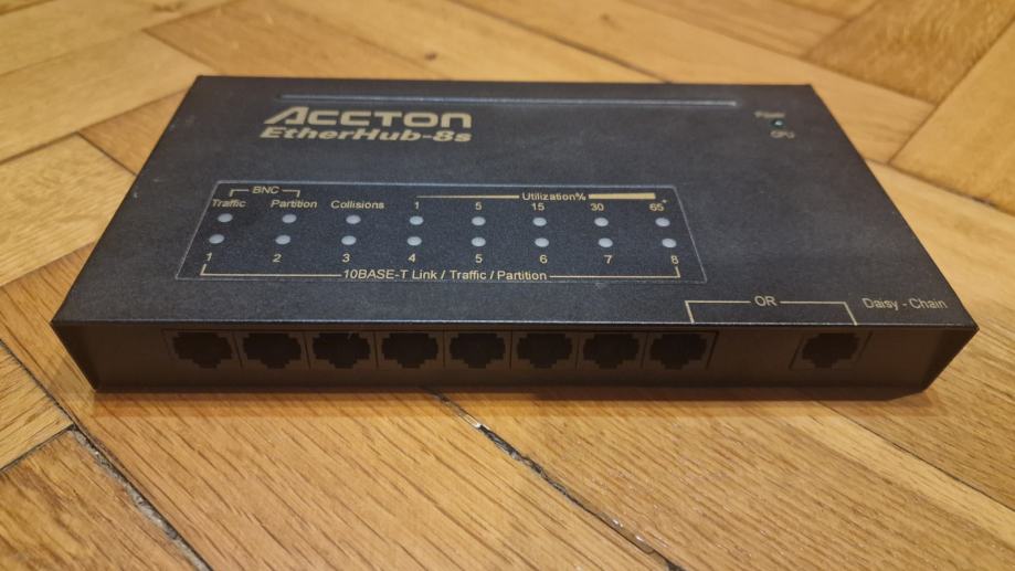 Na voljo je starejši, povsem delujoči klasični ethernet hub (repeater, vsi porti "slišijo" vse hkrati) hitrosti 10 mbps. Priključki so 1 x 10BASE-2 (50 ohm coax) in 8 x 10BASE-T.