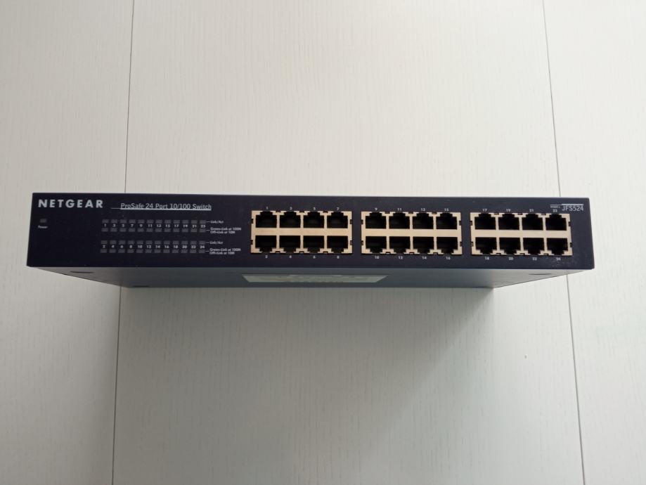Switch NETGEAR JFS524, 24portov. nastavki za montažo v rack so zraven vendar niso slikani.