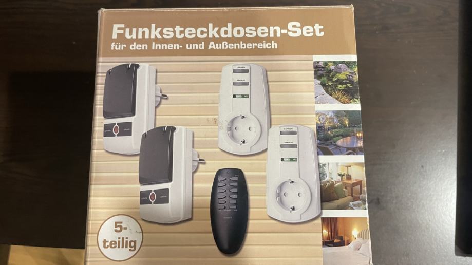 Prodam komplet štirih vtičnic krmiljenih z RF daljinskim upravljalcem, IP44. Neuporabljeno.