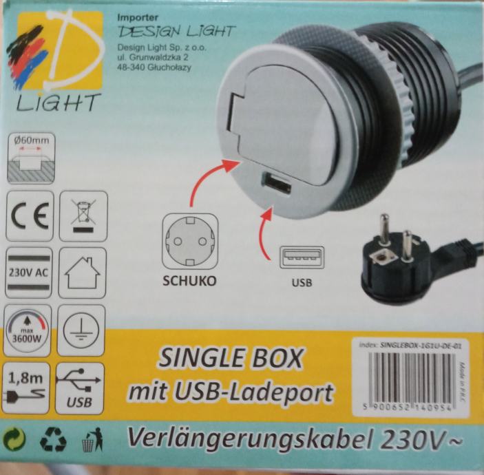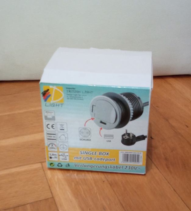 Prodam Vtičnik z USB portom Design Light Single box. To je vtičnik, ki ga lahko vgradite npr. v mizo in pult. Ima 1,8 metrov dolg kabel, navadno vtičnico in USB vtičnico, ter maksimalno moč 3600 W. Premer je 60 mm. Imam 4 kose, cena enega je 17 evrov + poštnina (če ga hočete naročiti; poštnina je odvisna od kraja kjer živite).