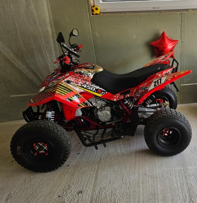 Prodam atv 450 hitrost 150 do 160km brutalni pospeški 5 prestav plus vzratna, motor narjejen po ukuso motor zgleda top, možen nakup na obroke več na telefon